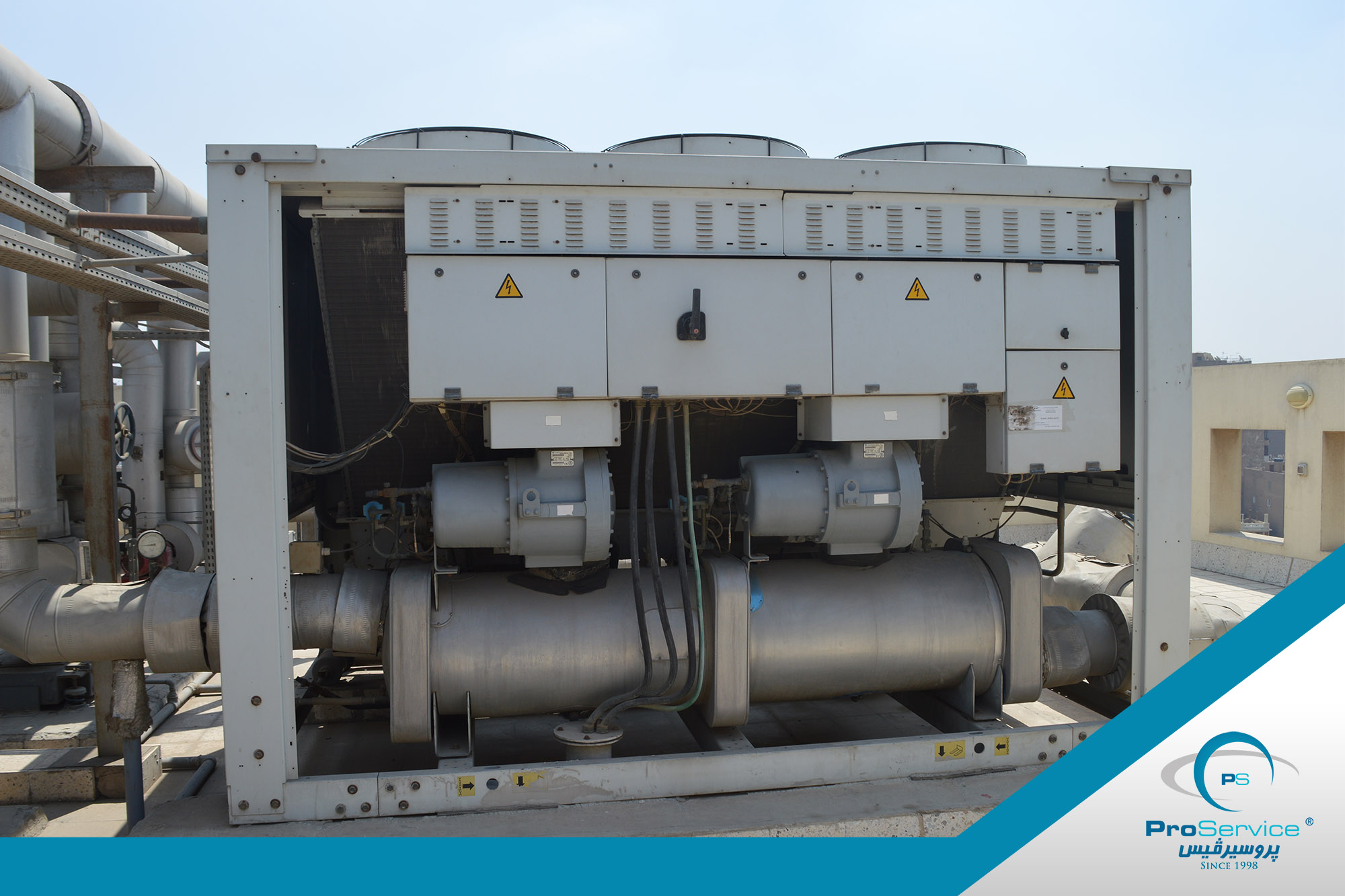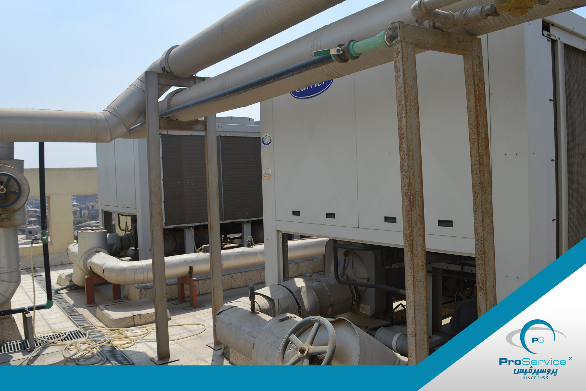 and chilled water system (4 chiller + 4 primary pump + 2 secondary pump), 2004 and 2012.